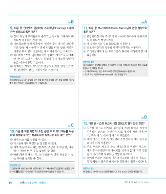 9. 다음 중 인터넷과 관련하여 스트리밍(Streaming) 기술에 11. 다음 중 캐시 메모리(Cache Memory)에 관한 설명으로
