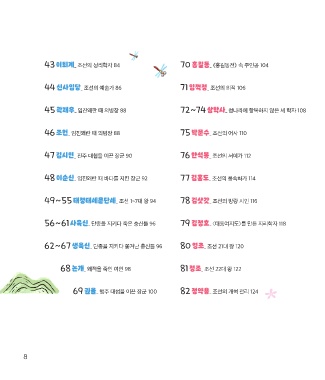49 ~ 55 태정태세문단세_ 조선 1~7대 왕 94 78 김삿갓_ 조선의 방랑 시인 116