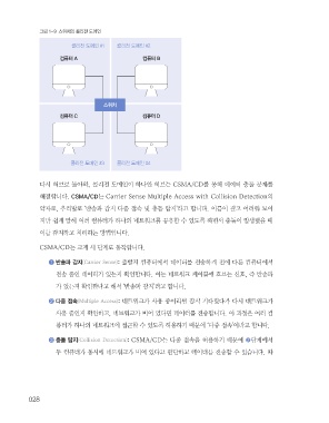 사용 중인지 확인하고, 네트워크가 비어 있다면 데이터를 전송합니다. 이 과정은 여러 컴