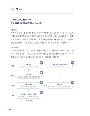 TCP/IP 각 계층의 주요 프로토콜과 네트워크 장비의 역할을 이해합니다.