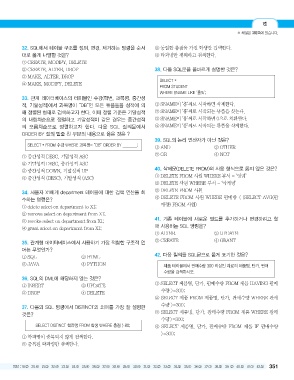 32. SQL에서 테이블 구조를 정의, 변경, 제거하는 명령을 순서 ③ 동일한 총점을 가진 학생만 검색한다.