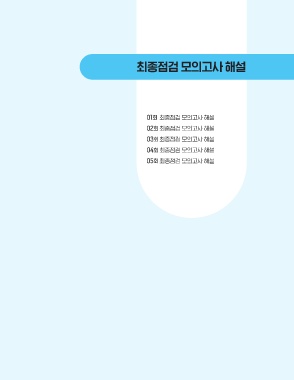최종점검 모의고사 해설 01회 최종점검 모의고사 해설 02회 최종점검 모의고사 해설 03회 최종점검 모의고사 해설 04회 최종점검 모의고사 해설 05회 최종점검 모의고사 해설 2025. 11. 20. 오후 3:52 11_별책1_2026기본서필기_기능사 모의1-5회(347~412).indd 379 11_별책1_2026기본서필기_기능사 모의1-5회(347~412).indd 379 2025. 11. 20. 오후 3:52